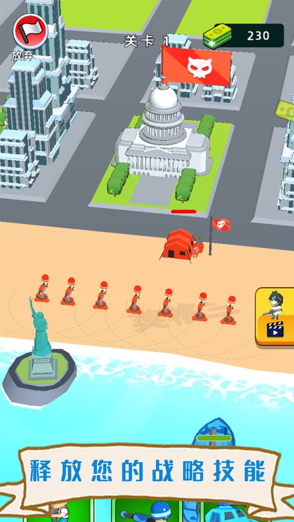 2、根据关卡敌人特点,选择合适武器装备部队,更快的控制局面。