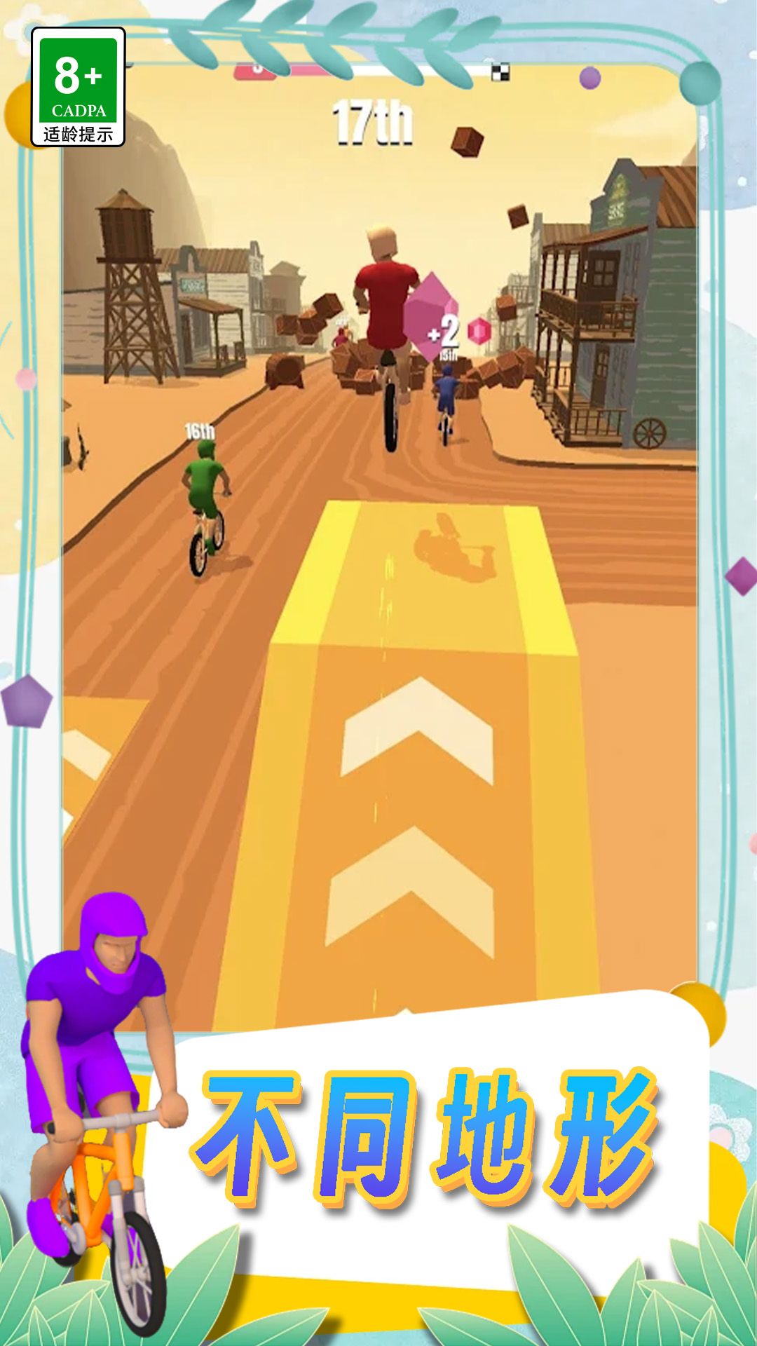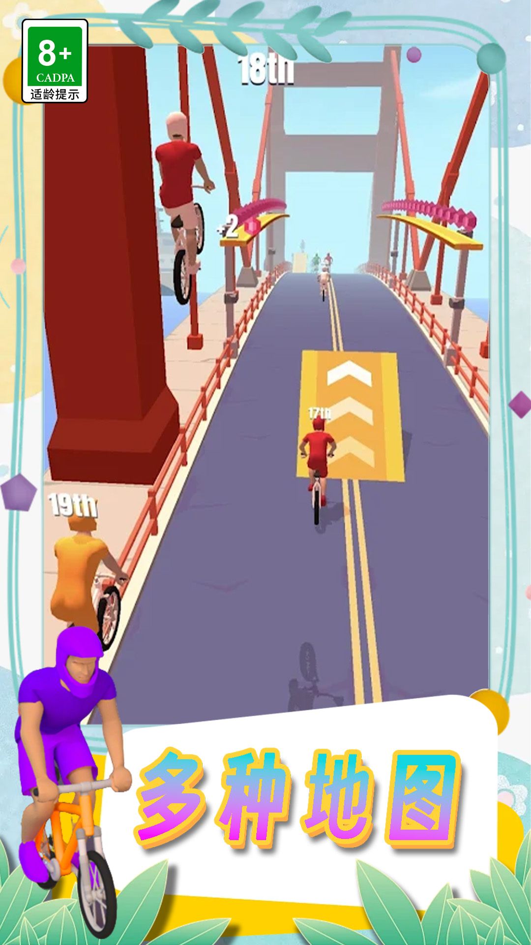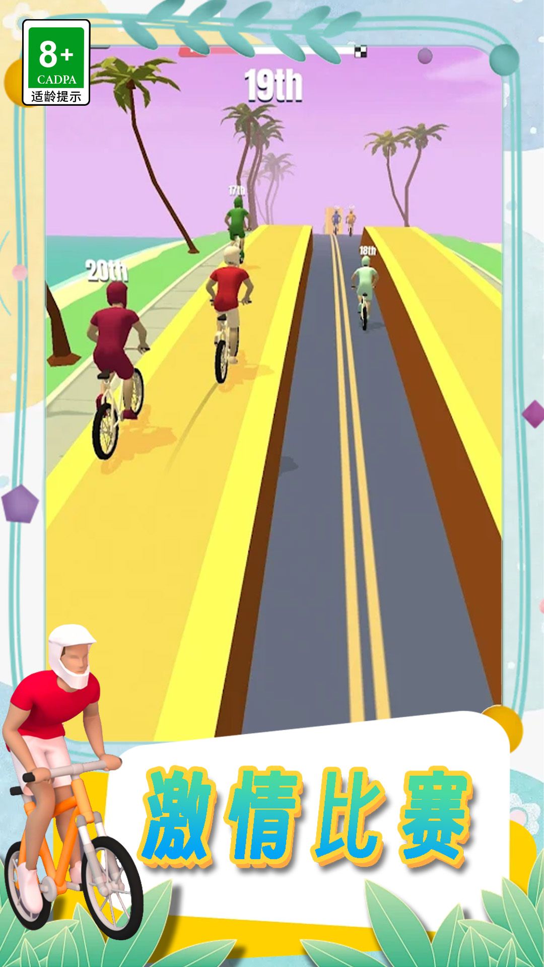 1、在游戏中能够体验到高速自行车竞赛的紧张刺激,感受风驰电掣的速度感。