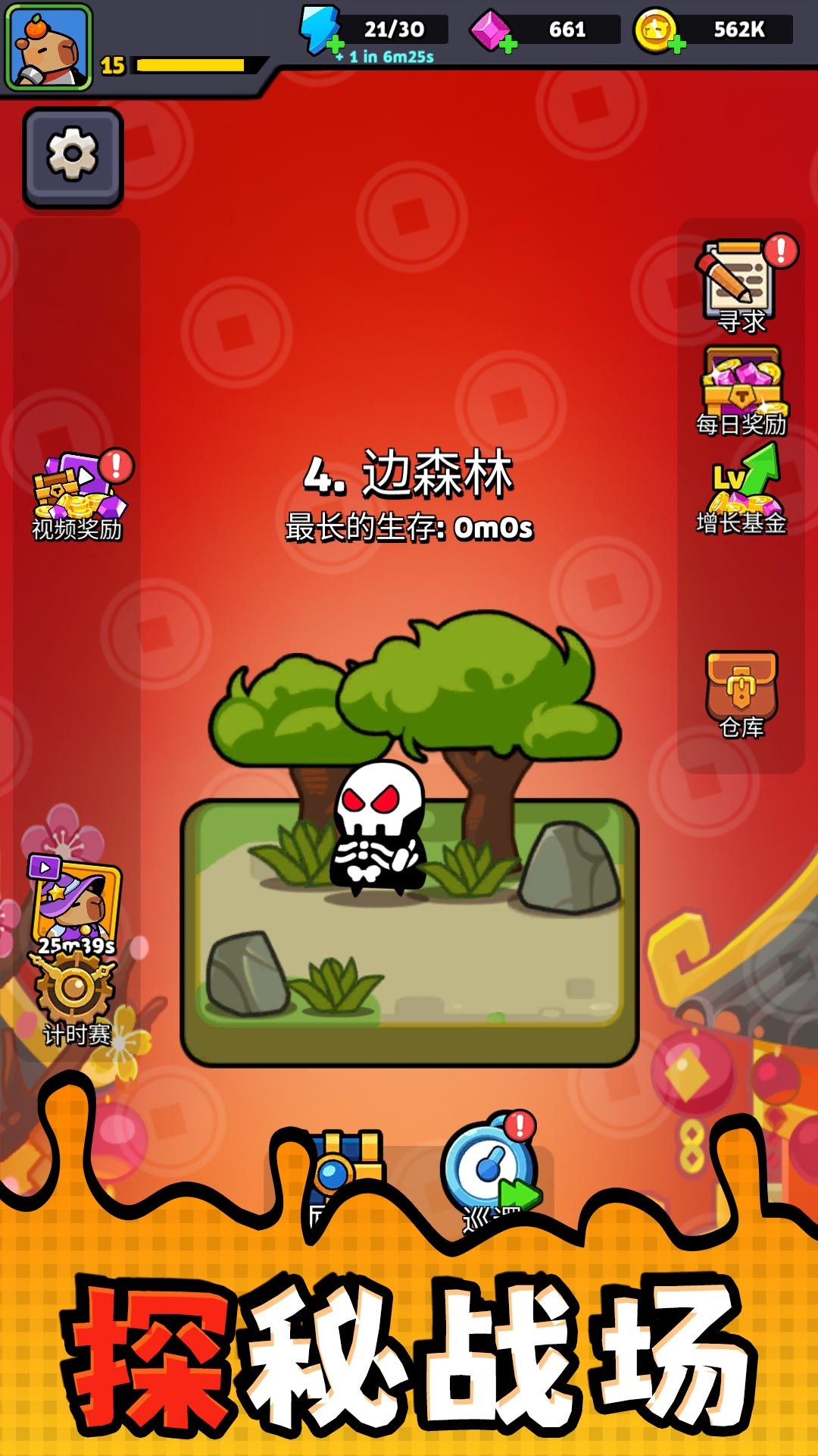 1、收集各类资源,如金币、道具等,为英雄升级和解锁战技做准备。