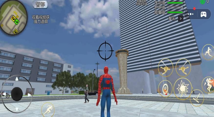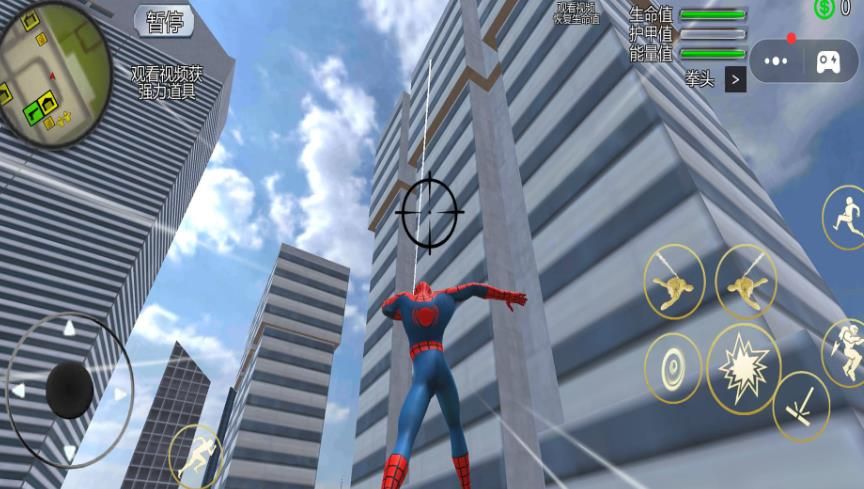 1、操控蜘蛛英雄在城市中穿梭,利用蜘蛛绳索快速移动,前往敌人所在位置。