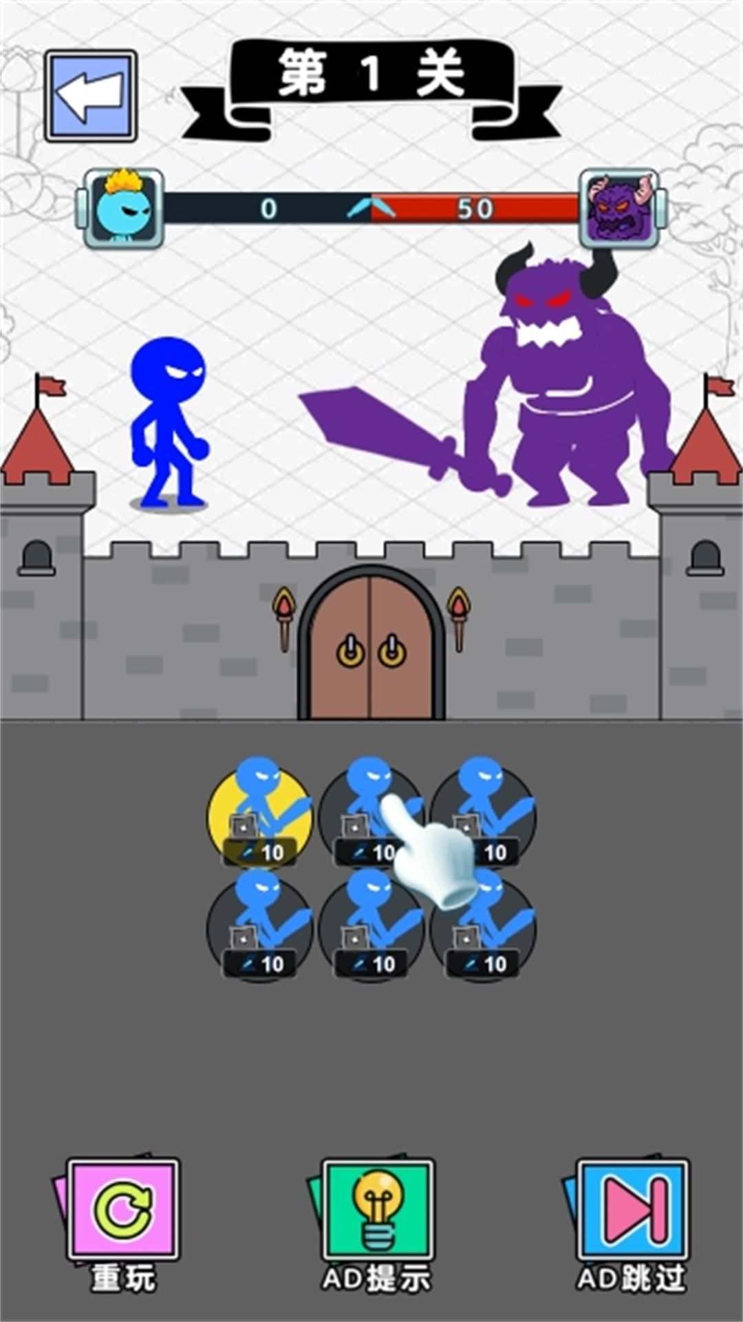 2、通过攻击比自己等级低的火柴人来获取成长机会,使战斗具有策略性。