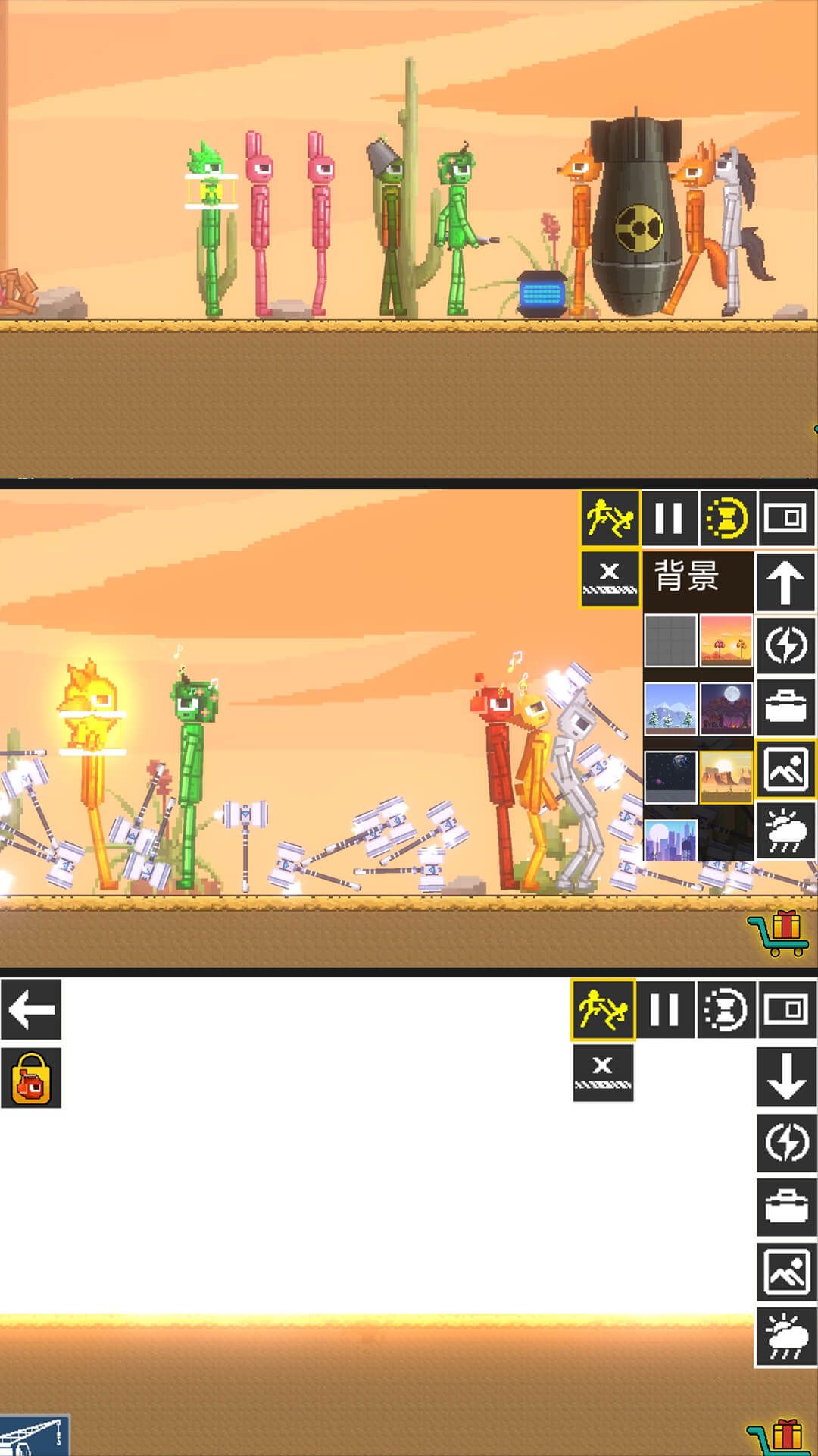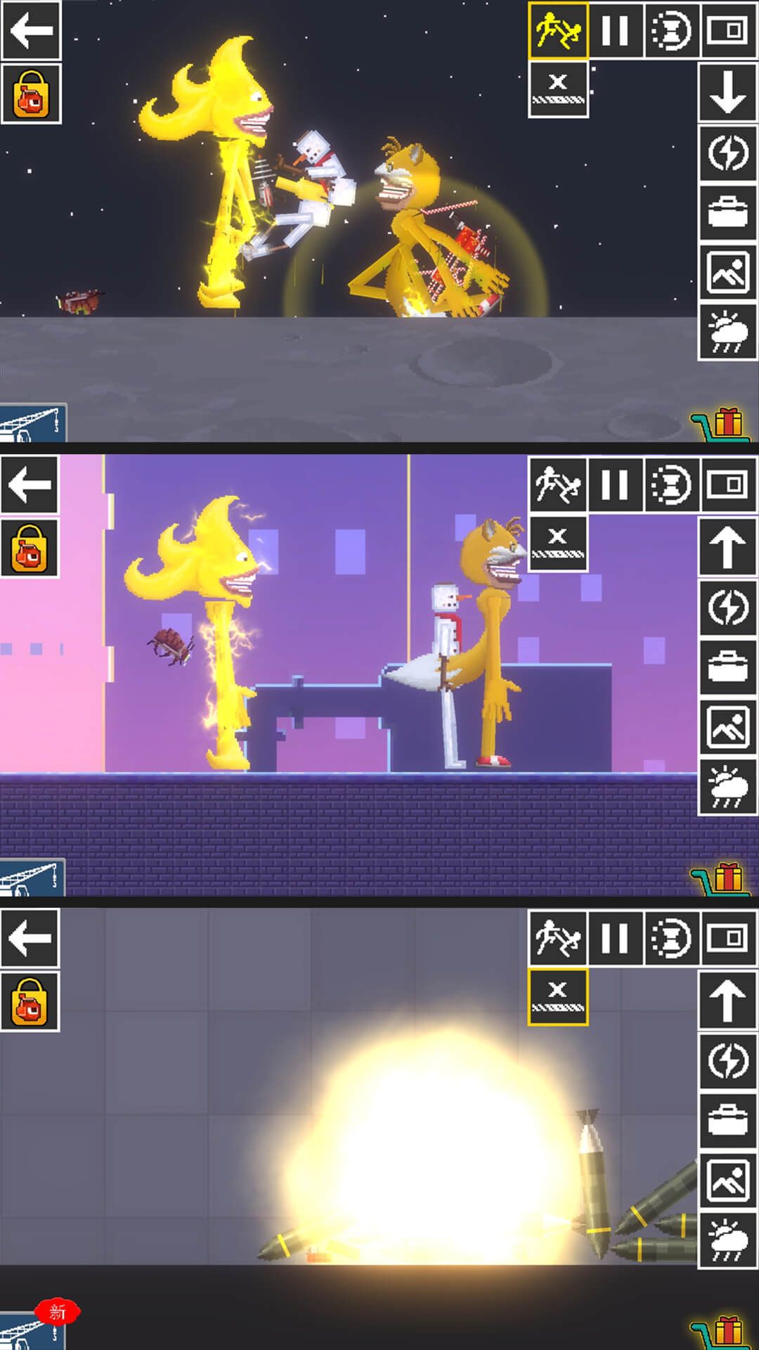 2、可以尝试击败火柴人、布娃娃等角色,使用各种武器、车辆和炸弹进行战斗。