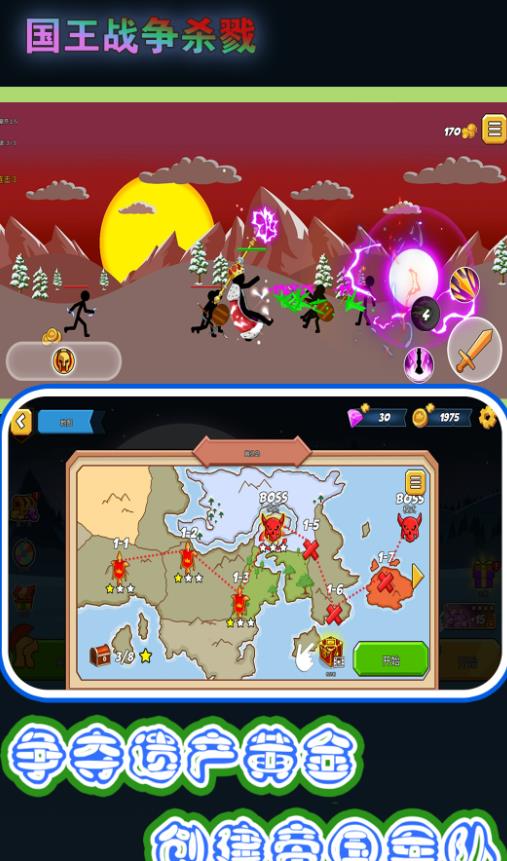 2、开启宏伟的战略布局,逐渐壮大自己的王国势力,打造最强火柴人军团。