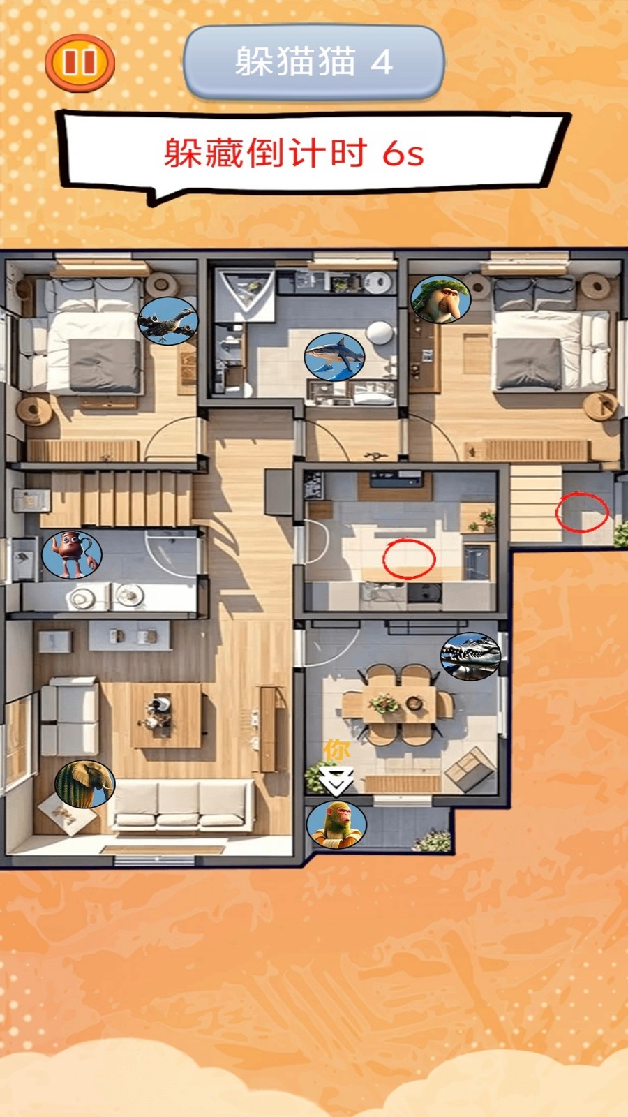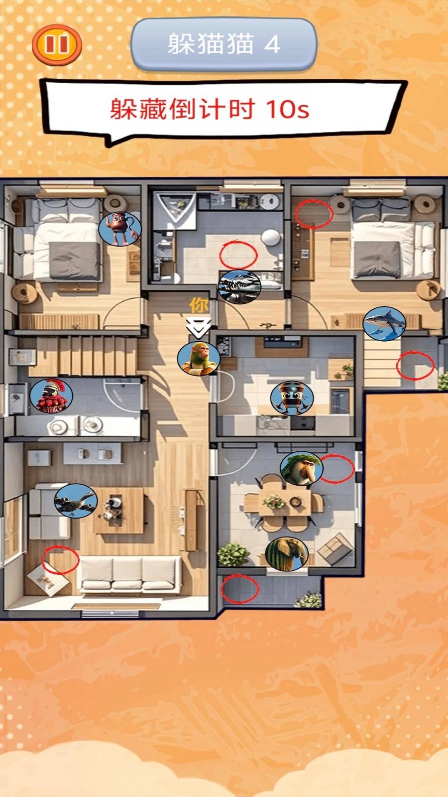 2、开启隐藏在场景中的秘密区域,逐渐掌握躲藏与追逐的技巧。