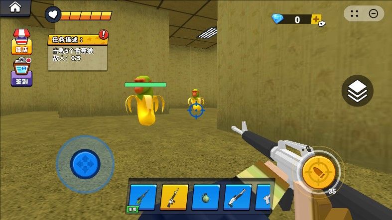 1、在盖瑞世界的地图中探索,寻找安全的逃亡路线,避开香蕉猴的追击。