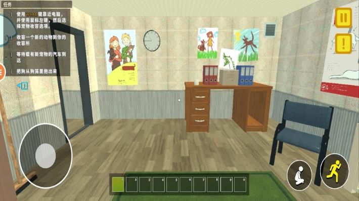 1、接收新宠物:等待载有动物的车辆到达,通过操作将它们收容进收容所。