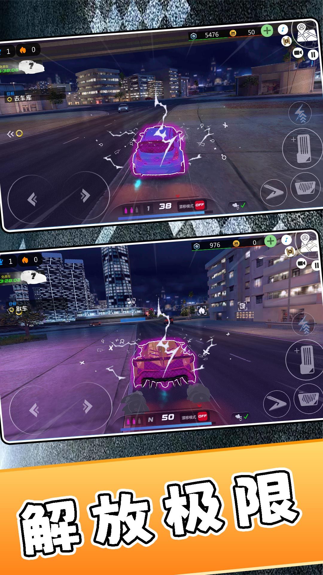 3、在比赛中既能通过精准操作做出漂移动作展现技巧,又能适时使用氮气加速超越对手。