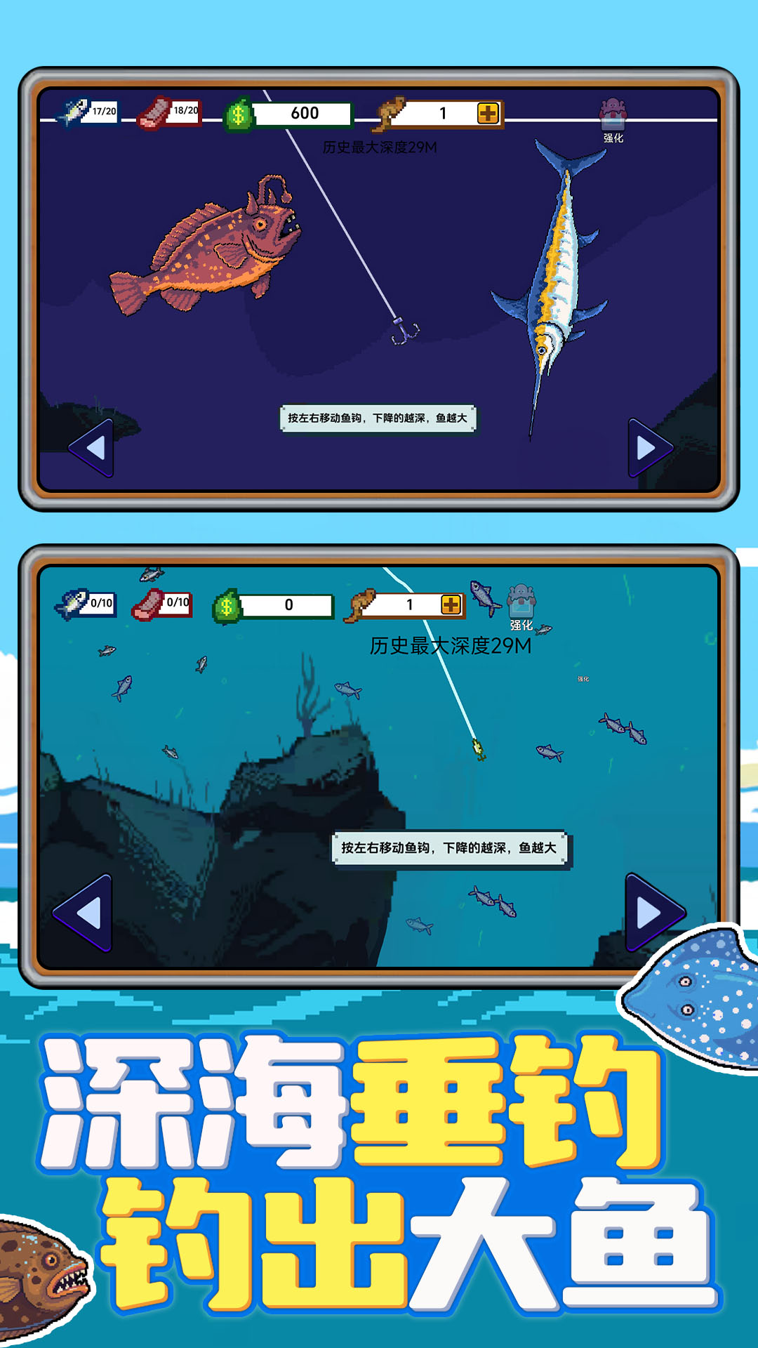 疯狂钓鱼模拟器是一款充满挑战的休闲像素游戏,玩家将扮演一名钓鱼高手,穿梭于各种多变的水域环境中。游戏内模拟了真实的钓鱼体验,涵盖挑选鱼竿、准备鱼饵以及精确投掷等环节。此外,还有众多珍稀鱼类供你捕捉,解锁成就系统,并展示你的渔获收藏。有兴趣的小伙伴不妨来下载吧!