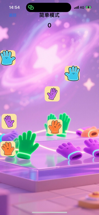 游戏中,屏幕上会随机出现多对手套,你需要快速观察并找到相同的两只,通过连线将它们配对消除。