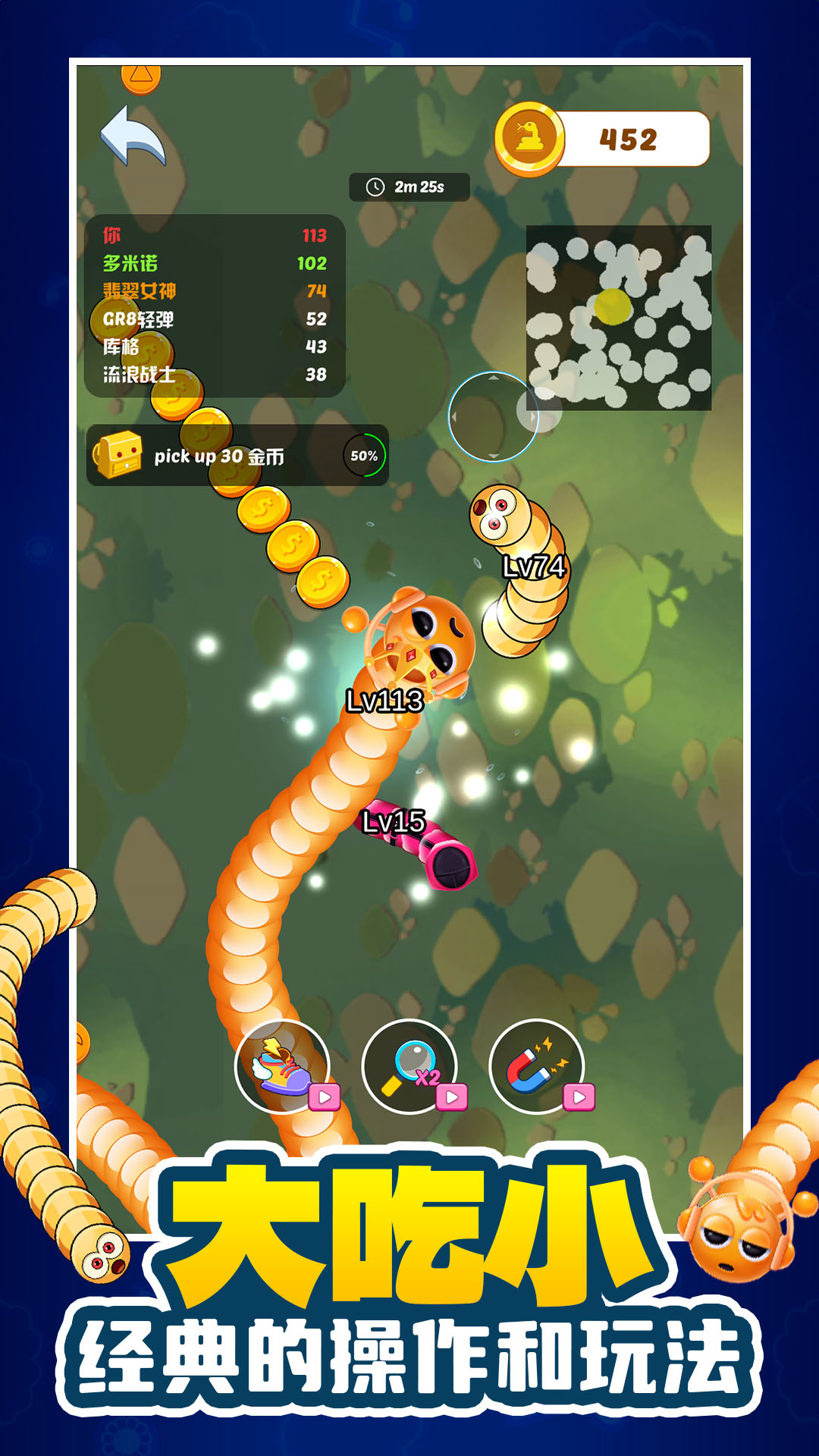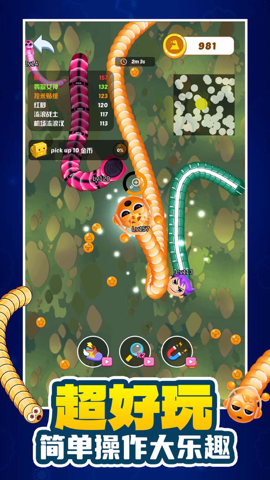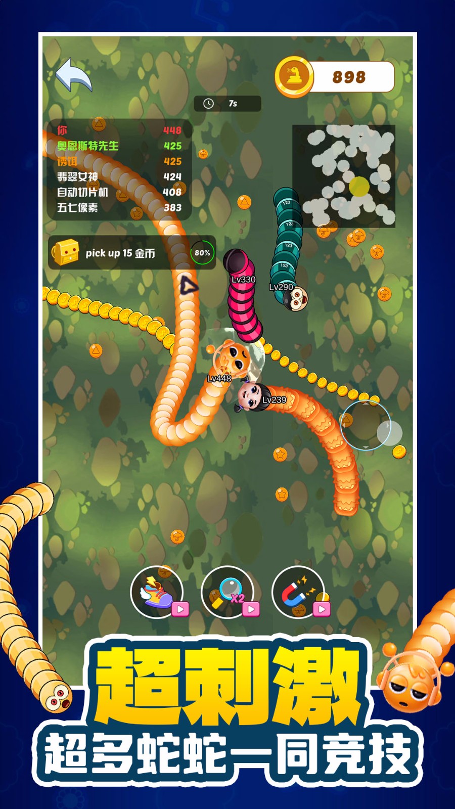3、展开一段段充满挑战与惊喜的冒险旅程,体验欢快的贪吃蛇对决。
