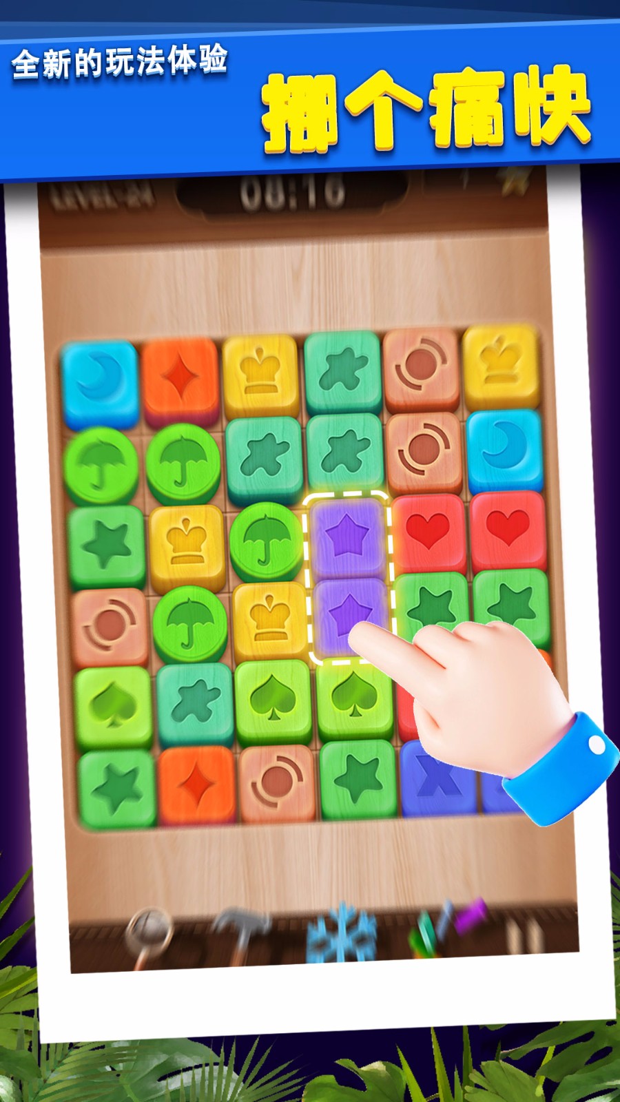 木块挪对对是一款锻炼思维能力的益智游戏,玩家需通过操作木块,将相同图案的方块排列成直线后进行消除。游戏内设有多种关卡,难度由易至难,旨在逐步提升玩家的逻辑推理能力。此外,游戏还提供了多样化的道具,用以应对难关,增添游戏乐趣。喜欢的快来下载体验吧!