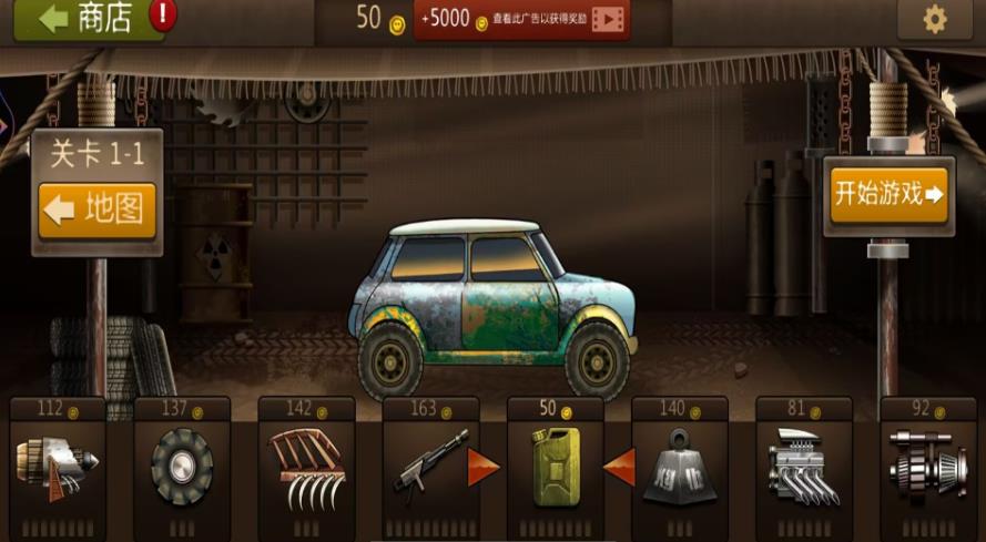 3、载具进化系统,收集特定道具,让越野车逐步进化为更高级形态。