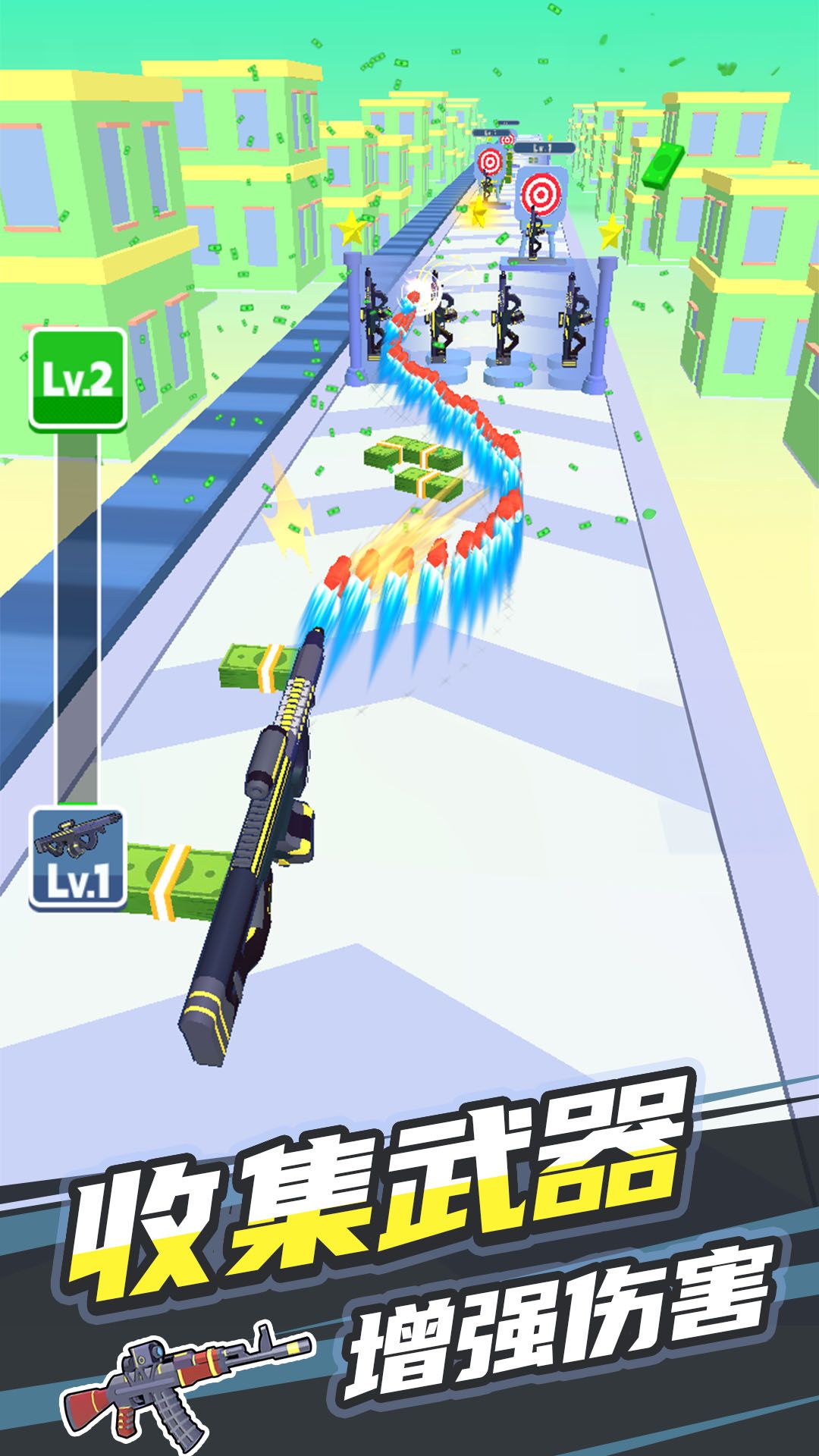 1、全新的跑酷主题,以枪械为主角,你需要操控它,勇敢的前行。