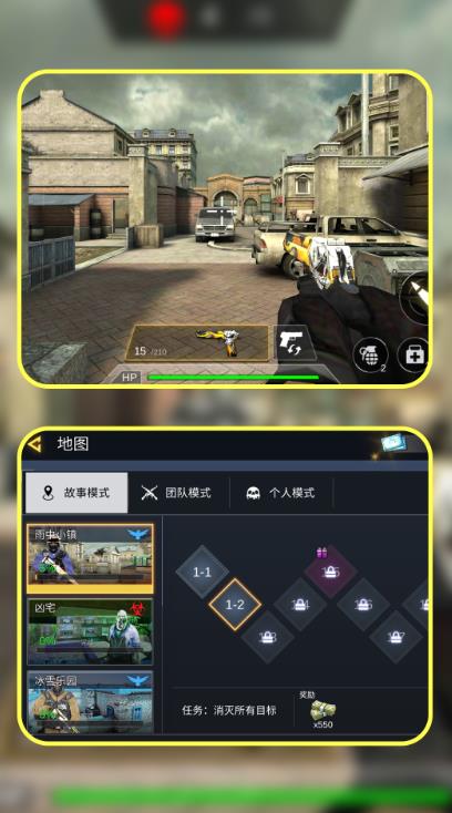 1、有着剧情模式,完成一系列任务,解锁新剧情与奖励,体验枪战故事魅力。
