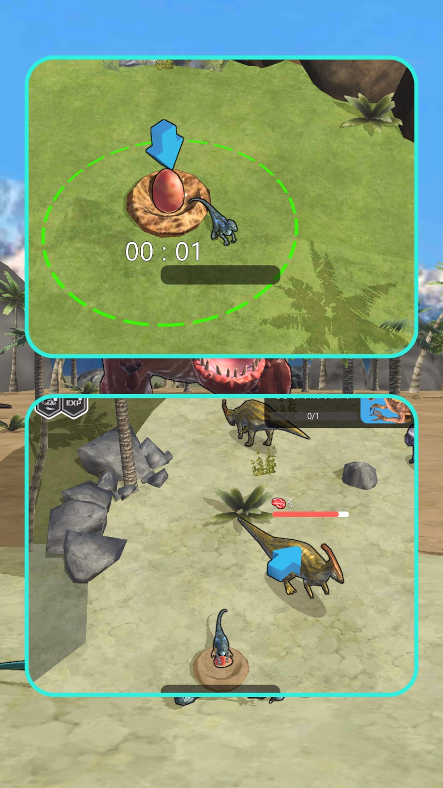 1、控制一只迅猛龙,通过不断觅食,逐步解锁进化路径,体验从幼龙到成年龙的成长历程。