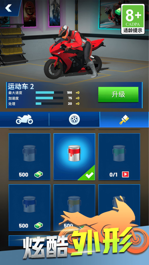 2、提供多种风格迥异的赛车,根据自己的喜好和赛道特点选择合适的赛车。