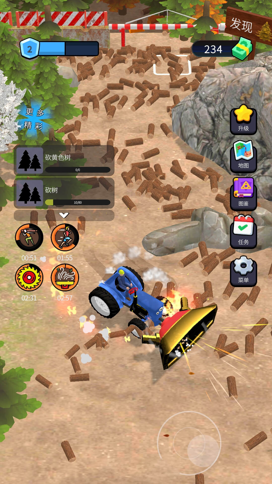 3、升级伐木工人的技能与伐木场设施等级,提升伐木效率与木材产量质量。