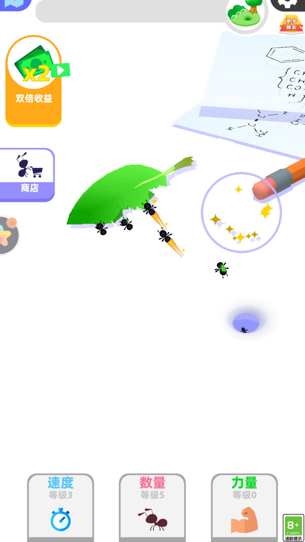 2、改善王国的生态环境,使其更加适宜蚂蚁居住,按照你的想法进行很是自由。