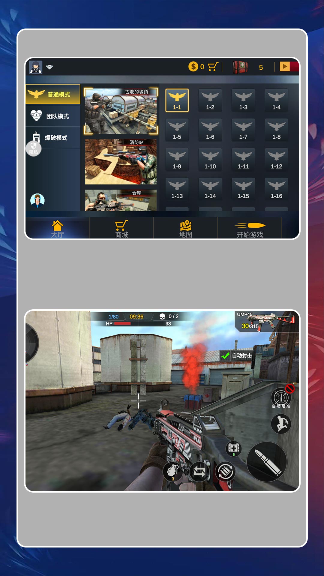 1、激烈的火拼上演,注意力集中,小心周围的敌人,不要被他们袭击。