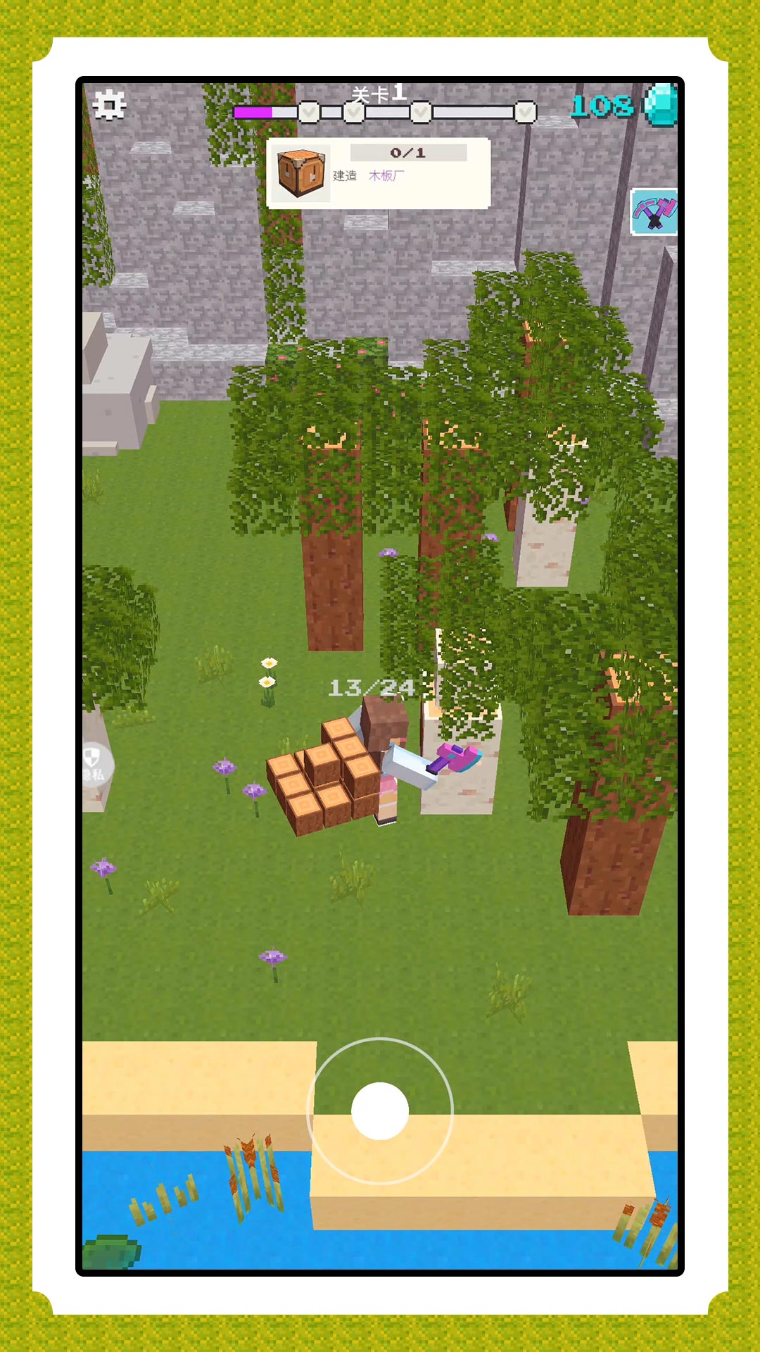 1、伐木挖矿获得需要的各种材料,打造美好的家园村庄,在这里开心的生活。
