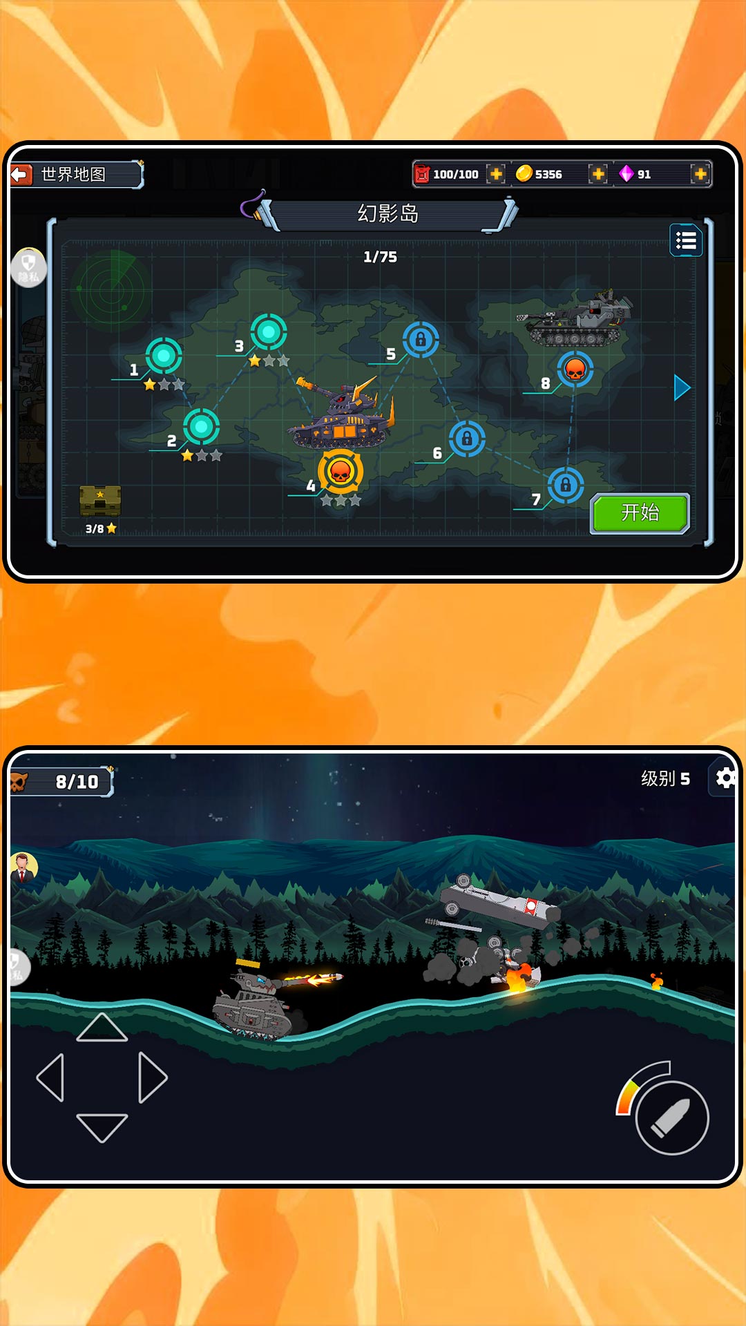 1、坦克交锋激烈无比,很多的关卡任务,难度都是递增的,等你的参与。