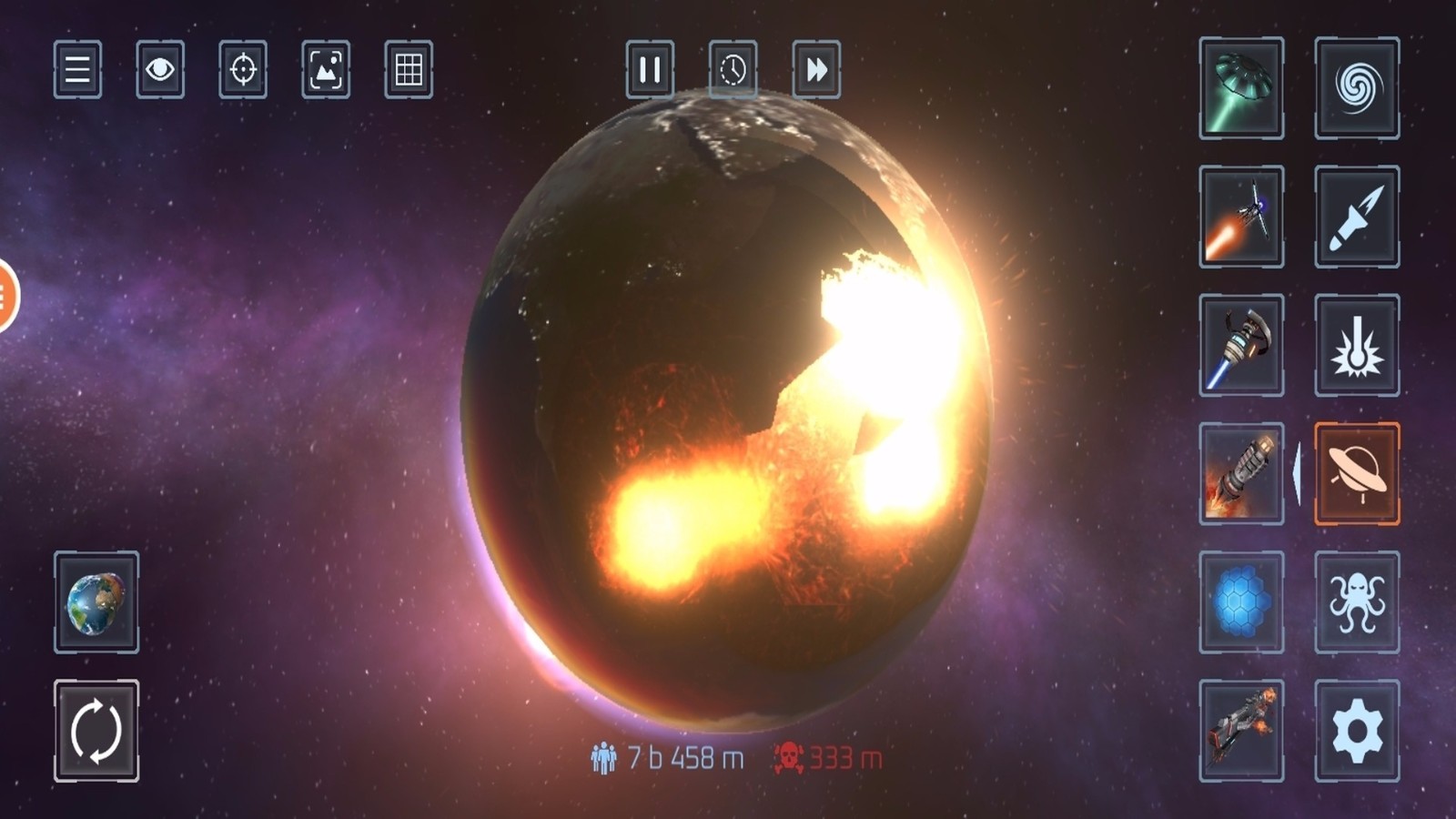 2、开启你的毁灭征程,选择目标星球,逐渐释放各种强大而绚丽的毁灭技能。