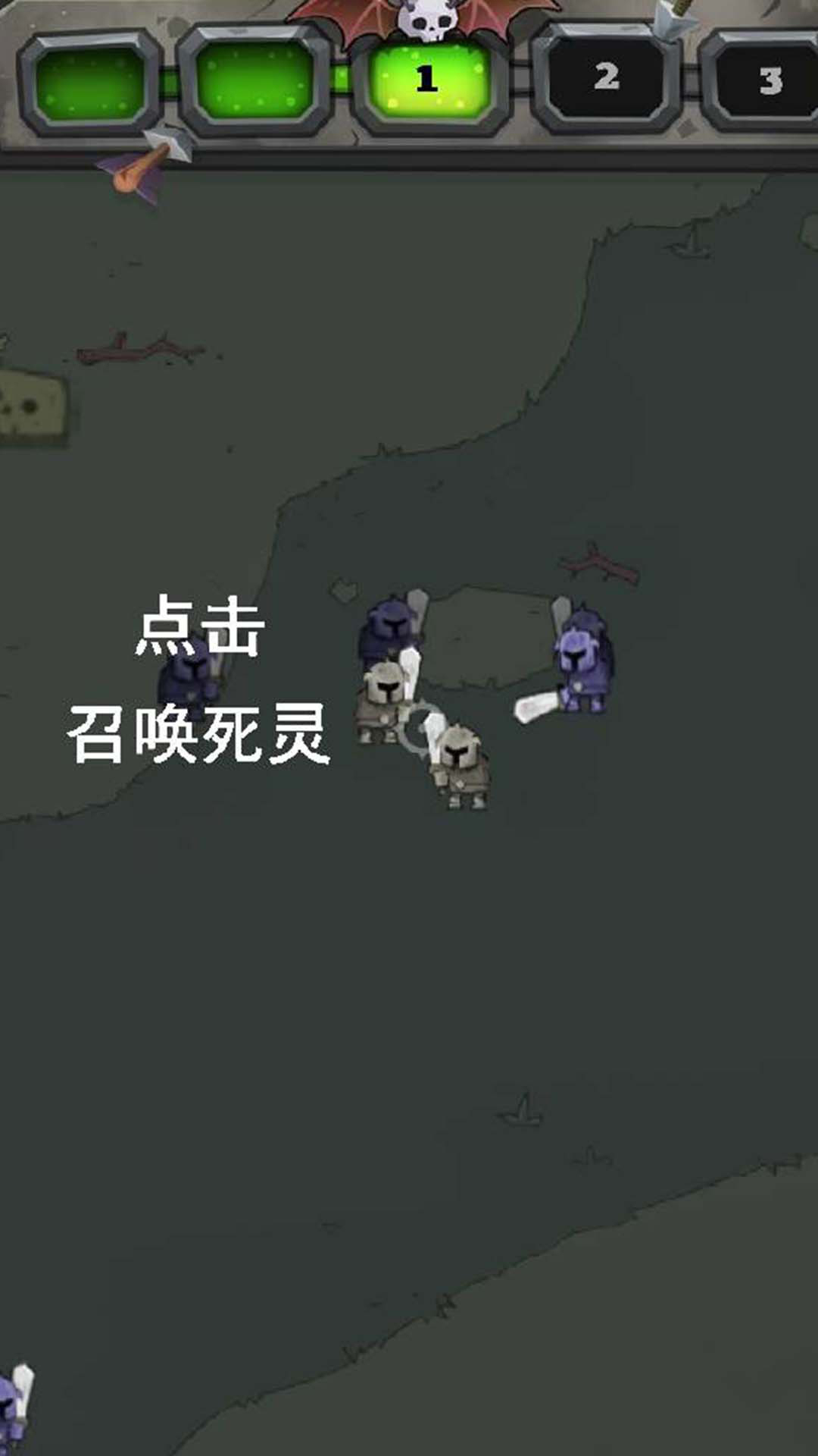 2、通过点击屏幕,可以召唤骷髅战士、僵尸、幽灵等亡灵怪物加入战斗。