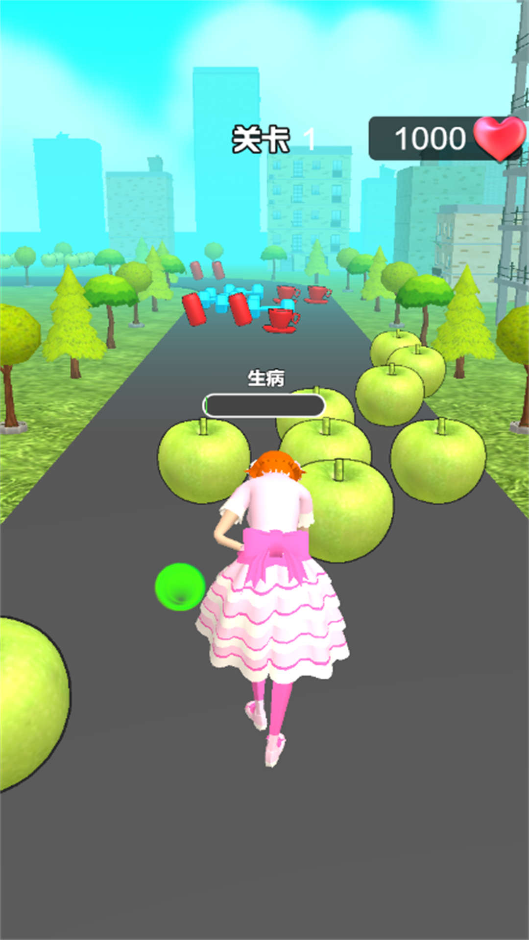 1、左右移动你的角色,控制她不断的前行,让自己的身体变得更加的健康。