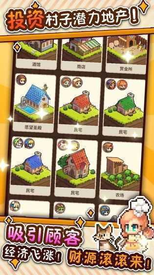 你可以选择投资村子,你的任务就是吸引更多的顾客,让经济飞涨财源滚滚;