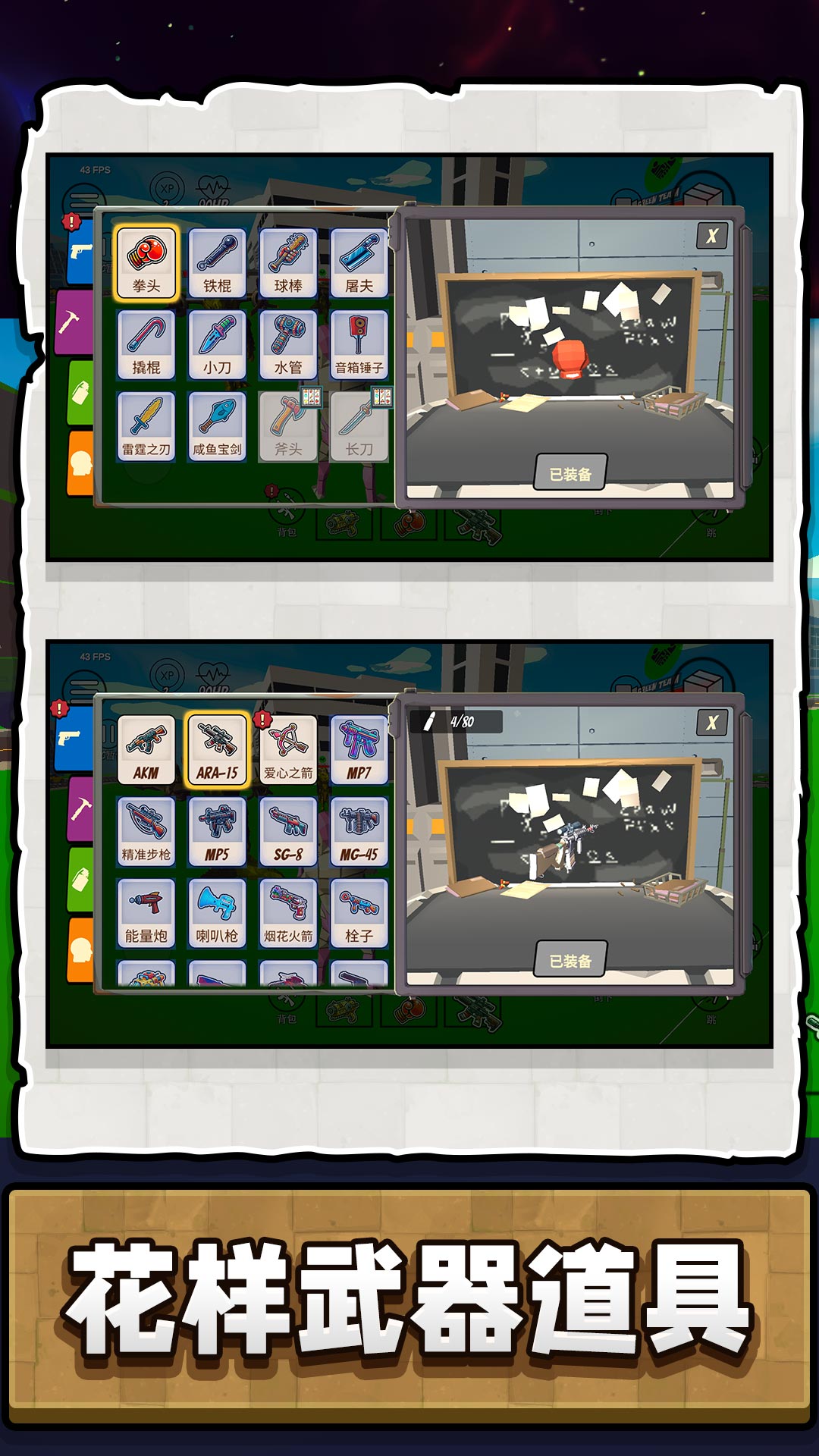 3、解锁更多威力强大的枪支装备与炫酷技能,成就沙盒世界中令人敬仰的无敌战神。
