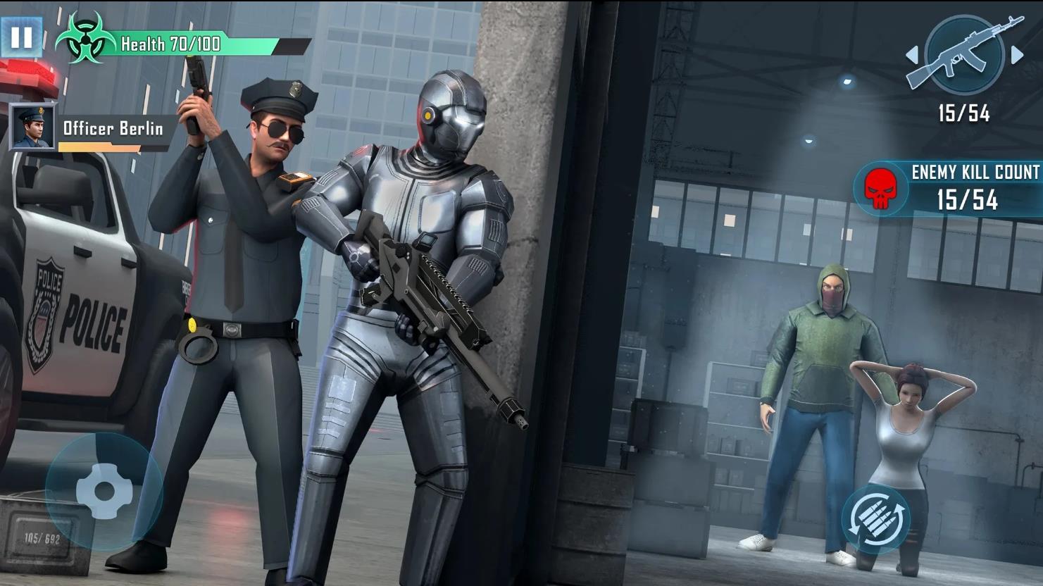 机器人救援射击是一款以动作射击为核心的游戏,玩家将化身为机器人警察。你的主要任务是捍卫城市的安宁,确保日常治安,并对抗邪恶势力。游戏氛围紧张而充满挑战,旨在展现你的实力,以更高效地完成各项任务。你可以自由切换多种地图,尽情探索,享受游戏带来的刺激体验。