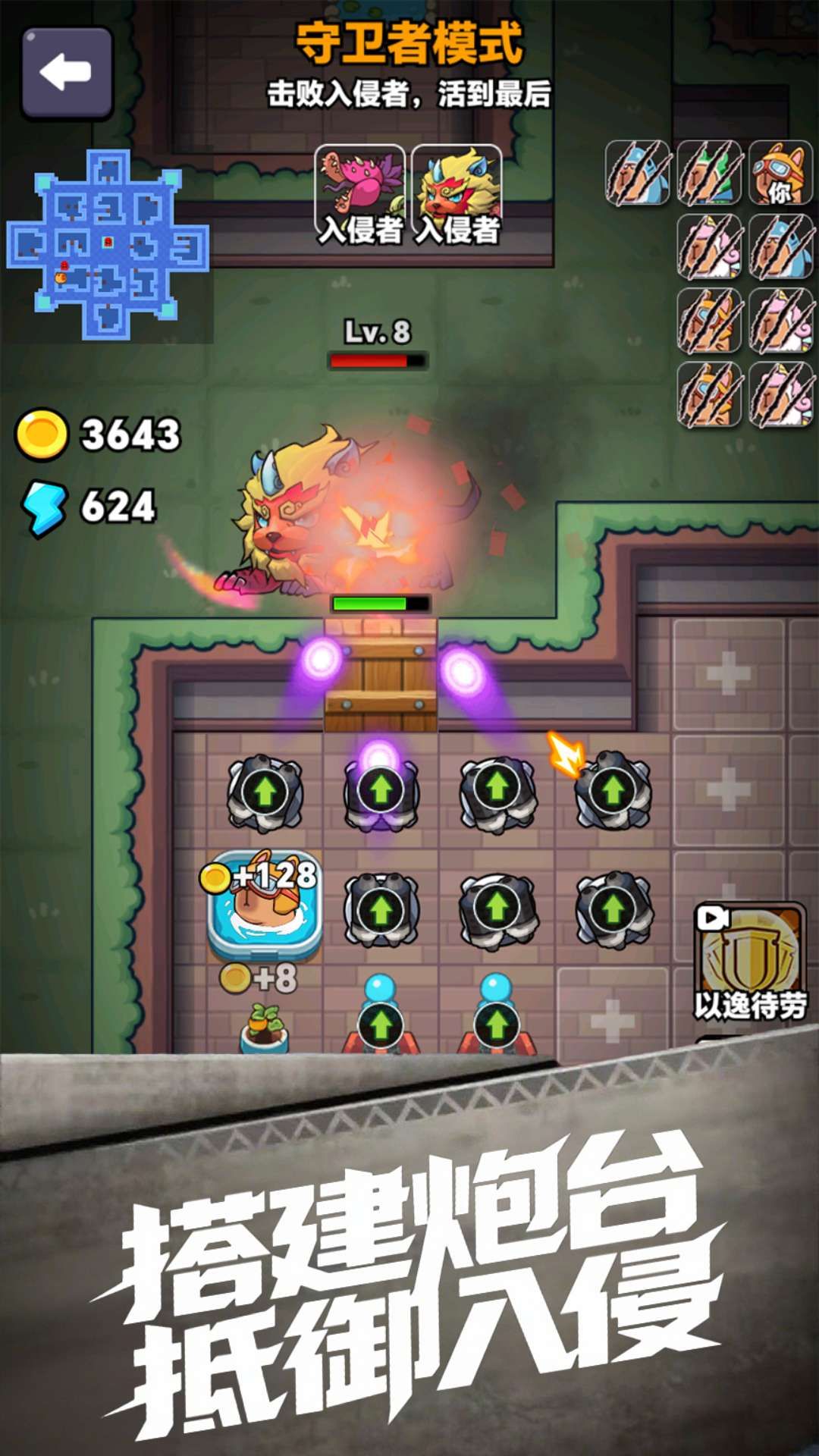 2、可升级房门、建造防御塔、布置陷阱等,多样防御设施需合理搭配,应对不同类型入侵者的攻击。