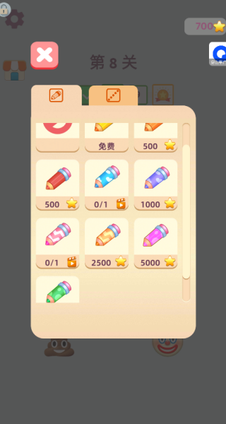 4、完成任务可以获得奖励,解锁不同的画笔,需要一定的金币兑换。