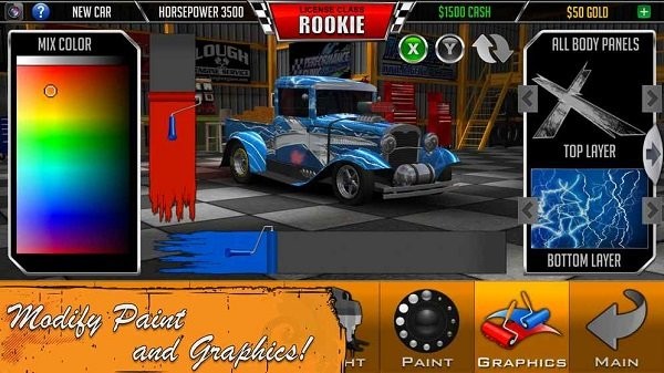 5.自定义赛车,是改装提升赛车性能,更改游戏外观。