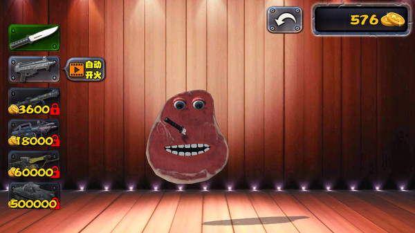 3、使用金币可以解锁更多高级的武器,让你能够对牛排进行更强烈的破坏。