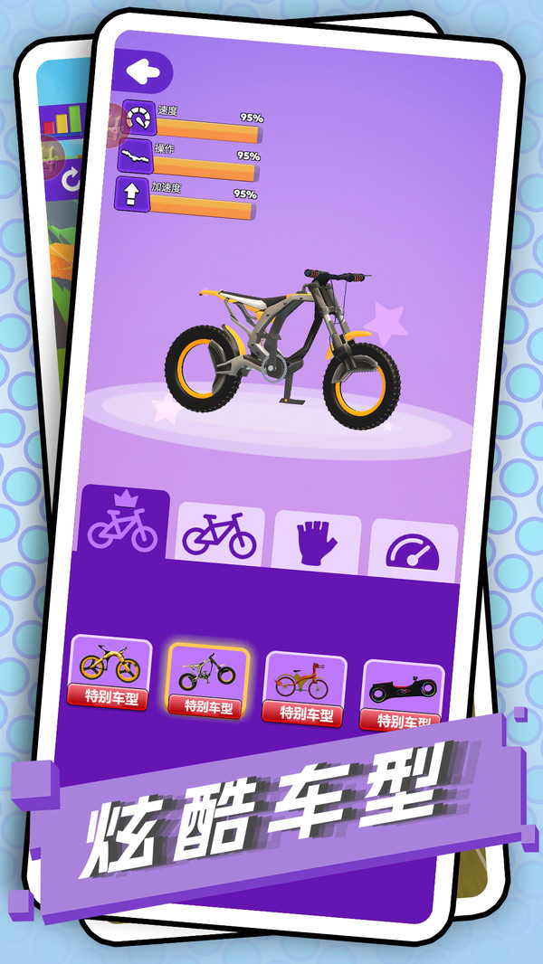 2、解锁酷炫的自行车,随时展开比赛,高能不断的过程,令人无比期待。