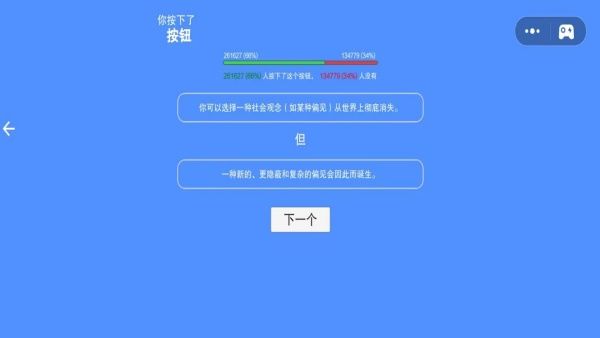 3、显示其他玩家的选择比例,让个人决策与群体倾向形成对比,引发思考。