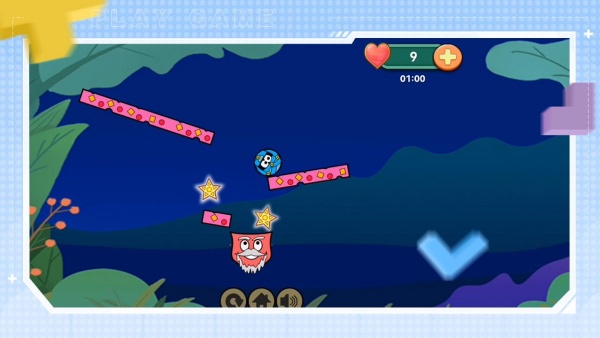 1、操控角色在关卡里进行跳跃闯关,顺利避开所有障碍,完成每一道关卡。