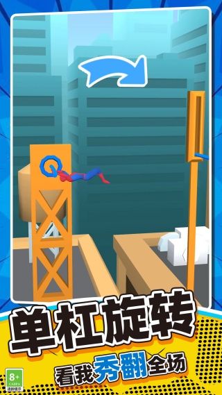 2、从简单的单杠跳跃到复杂的连续翻转关卡,难度逐步提升,每一关都能带来新的操控考验。