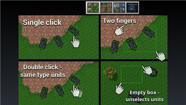 总体来说还是有点难度的,点击单位是选择这个单位,快速双击某单位能选中屏幕视线类相同的单位,持续按住屏幕能以按住点为圆心,持续扩大半径,大范围选取单位,同时点击屏幕两点,能在两点间形成矩形对单位进行框选。