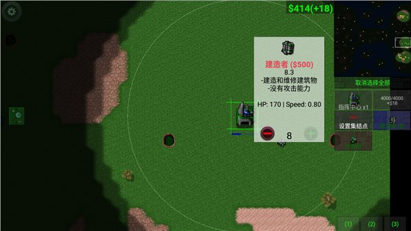 我们现在只有少的可怜的资金,怎么办呢?当然是找一个黑漆漆的大坑,然后让建造车在上面建‘’资金提取器”,钱就开始源源而来了,可升级,建议初期就升。