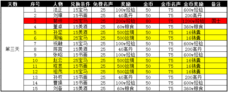 开通丝绸之路的玩家,在达到1000名声后,可以抽取锦囊奖励。第1天完成可以抽取3次(至少需要购买13次,650金),第2天完成可以抽取2次(至少需要购买5次,250金),第3天完成可以抽取1次(无需购买)。