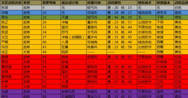 首先把目前版本中可以招募的武将详细的帮大家总结一下,以下就是目前可以招募的文臣武将。