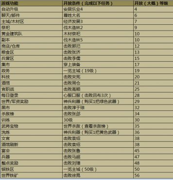 相信很多刚进入游戏的玩家经常会为一个问题所困惑,就是功能开放,自己要达到什么样的条件才会开启更强大的功能呢?今天就帮玩家详细的介绍下《攻城掠地》中每个功能开放的条件。在下根据自己的体验列了一个表格,希望对各位看客有所帮助,不喜勿喷。