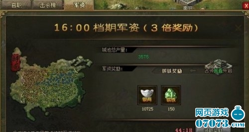 奖励内容为2种主要资源。【银币,镔铁(占领襄阳开放)】