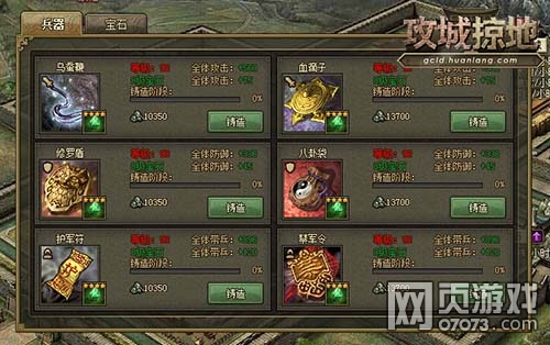 护军符和禁军令是加血量的,血量决定了初始碰撞的时候给敌人照成的伤害,也间接的影响到了攻击和防御。血量差距大了,实力的强弱就明显了,所以幻浪《攻城掠地》的玩家可以主要升级防御,次要升级血量。兵器从50级-100级,每10级可以进行一次免费改造,到了100级还能免费重铸一次,对战力提升很有用。