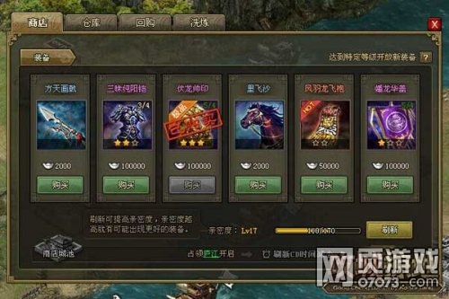 在大黑《攻城掠地》中,玩家可以在商店中花费一定银两购买到装备。在商店中,系统会随机刷出各种品质装备,玩家可以直接点击购买即可。但是,玩家要想获得更高品质的装备,还需要通过不断刷新商店中的商品,将有几率刷出高品质装备。玩家在刷新商店的过程中,会获得一定的亲密度奖励,亲密度越高,商店出现高品质装备的几率越大。