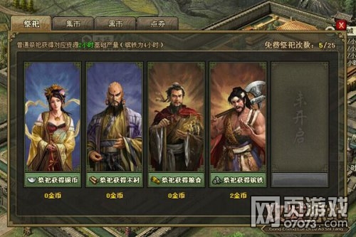 在大黑《攻城掠地》中,玩家可以通过祭祀系统来获得木材奖励。在祭祀中,玩家每天可获得25次免费祭祀机会,玩家便可通过祭祀活动来获得木材奖励。当玩家使用完免费的祭祀次数后,玩家还可通过花费一定的金币进行祭祀。