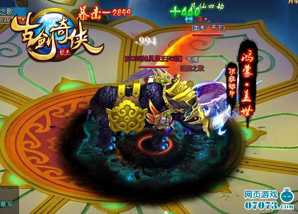 仙盟战,可以说是4399古剑奇侠中最负盛名的帮战了吧。整个战场采用了四叶草形状的设计,每个帮派的出生地都有自己的战神守护与此。获胜的关键是要获得一定值的战魂值,而战场的中央确实战魂值产出的重要来源,每每战鼓敲响,战场中央总是汇成一条血河!