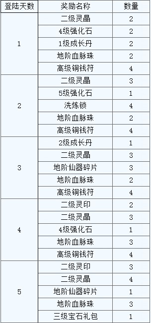 活动规则:活动期间,玩家登陆就能获得相应登陆天数的奖励